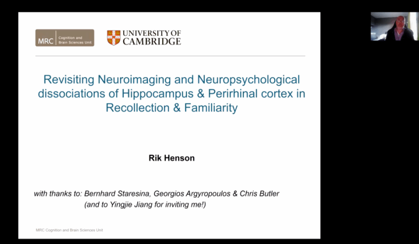 10月21日下午,东北师范大学心理学院“心理学前沿研究系列讲座”2025年第十三讲以线上形式顺利举行。应姜英杰教授邀请,国际认知神经科学领域记忆与老化研究的领军学者、剑桥大学认知神经科学教授、英国国家学术院院士Rik Henson教授,作了题为《Revisiting neuropsychological and neuroimaging dissociations of Hippocampus & Perirhinal cortex in Recollection & Familiarity》的专题讲座。本次讲座由姜英杰教授主持,学院师生踊跃参加,共同感受国际前沿学术魅力。