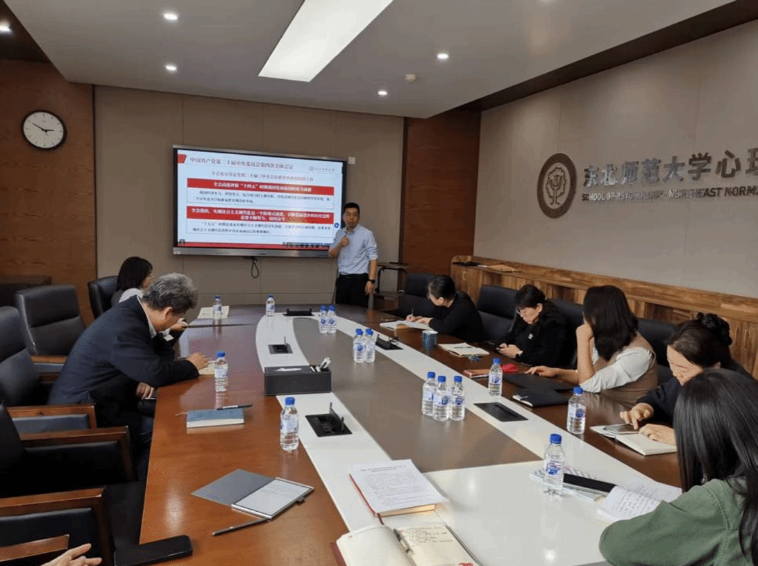 10月27日,心理学院党委理论学习中心组召开(扩大)会议,专题学习党的二十届四中全会精神。学院理论学习中心组成员、学院PI、教师党支部书记共同参与此次会议。