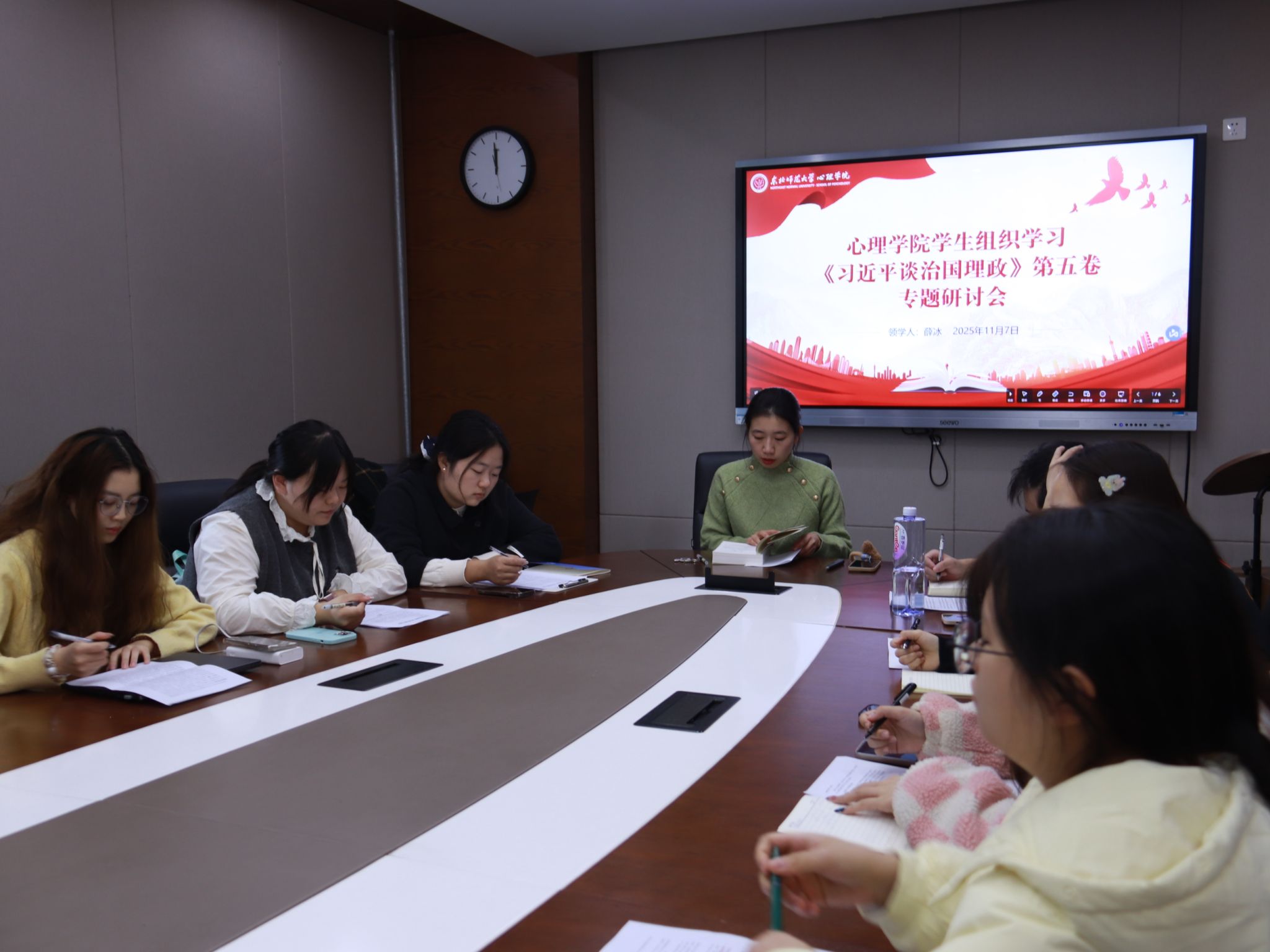 为深入学习贯彻习近平新时代中国特色社会主义思想,深刻领会《习近平谈治国理政》第五卷核心要义与实践要求,紧扣学校关于青年理论学习的工作部署,心理学院团委以强化青年思想引领为核心,采用“个人自学、集体学习、专题研讨、支部分散学习”的立体化学习模式,组织开展《习近平谈治国理政》第五卷专题学习活动,引导大学生在学思践悟中汲取真理力量,将党的创新理论转化为青春奋进的实际行动。