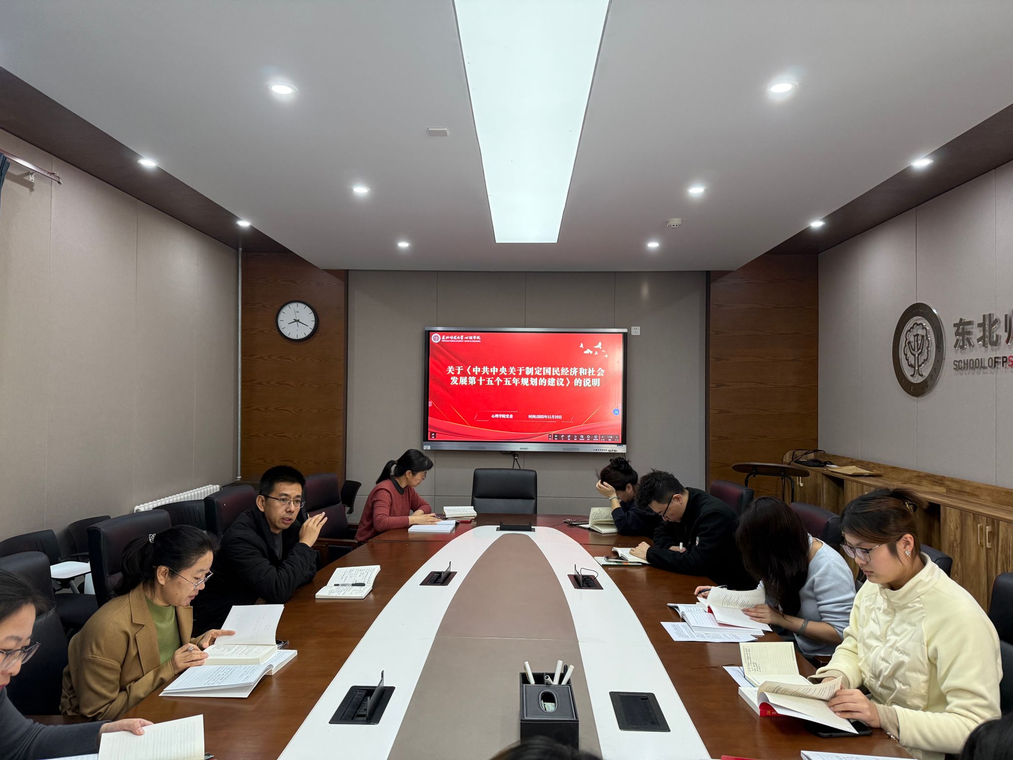 11月13日,心理学院召开党支部书记会议,学习《中共中央关于制定国民经济和社会发展第十五个五年规划的建议》及其说明,并对各支部“一部一品”项目进展情况进行总结。学院党委书记、党委副书记、组织员及各党支部书记参加会议。