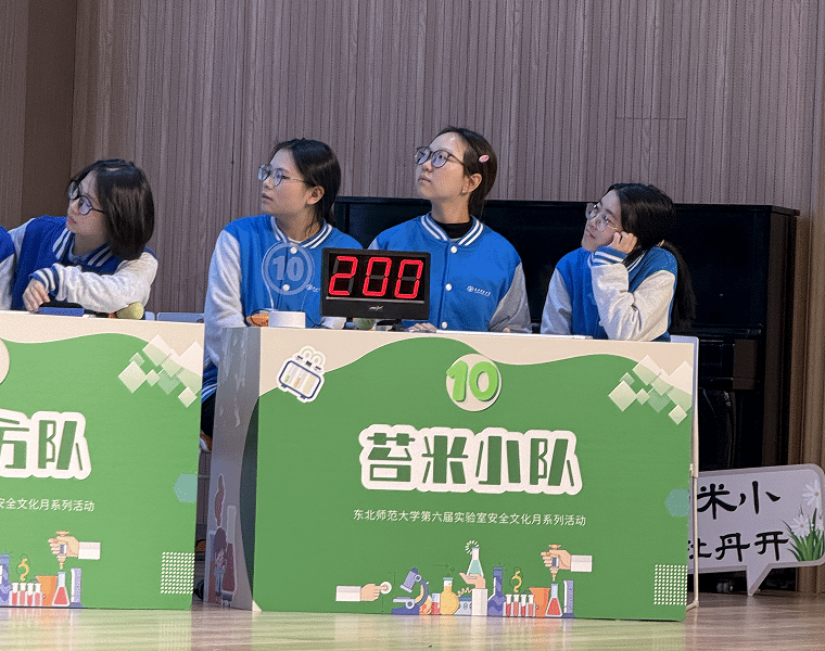 决赛阶段设置有问必答、点兵点将、互有灵犀、兵贵神速四大环节,涵盖单选、多选、竞猜、简答等多种形式,既考验选手对实验室安全知识的精准掌握,也注重团队配合与应变能力。赛场上,苔米小队成员分工明确、协作默契:有问必答环节沉稳应答,筑牢基础分值;点兵点将环节从容不迫,高效拿下关键分数;互有灵犀环节凭借巧妙描述与快速反应,展现默契协作;兵贵神速环节果断抢答、严谨作答,展现出扎实的知识功底与良好的竞技状态。