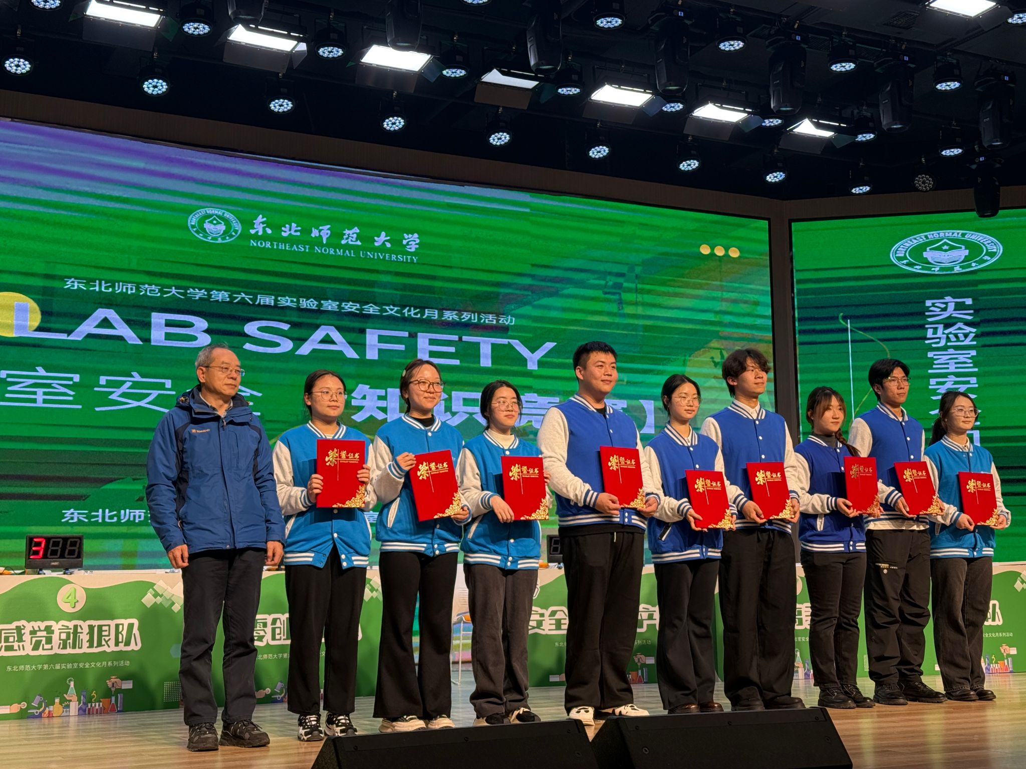 11月19日,东北师范大学实验室安全知识竞赛决赛圆满落幕。心理学院2023级基地班本科生许琼丹、罗丹丹、张梦妮组成的“苔米小队”凭借扎实的知识储备、默契的团队协作与沉稳的临场表现,一路过关斩将,最终以优异成绩斩获第五名,荣获竞赛三等奖。