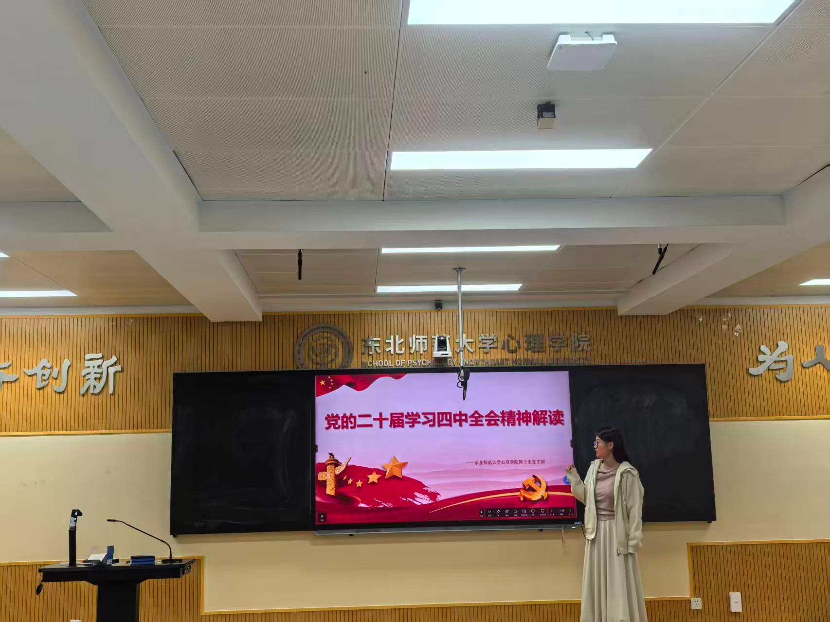 为深刻领会党的二十届四中全会精神,进一步加强博士生党员的思想政治建设,11月21日晚,心理学院博士生党支部在学院430教室召开党的二十届四中全会精神专题学习会。