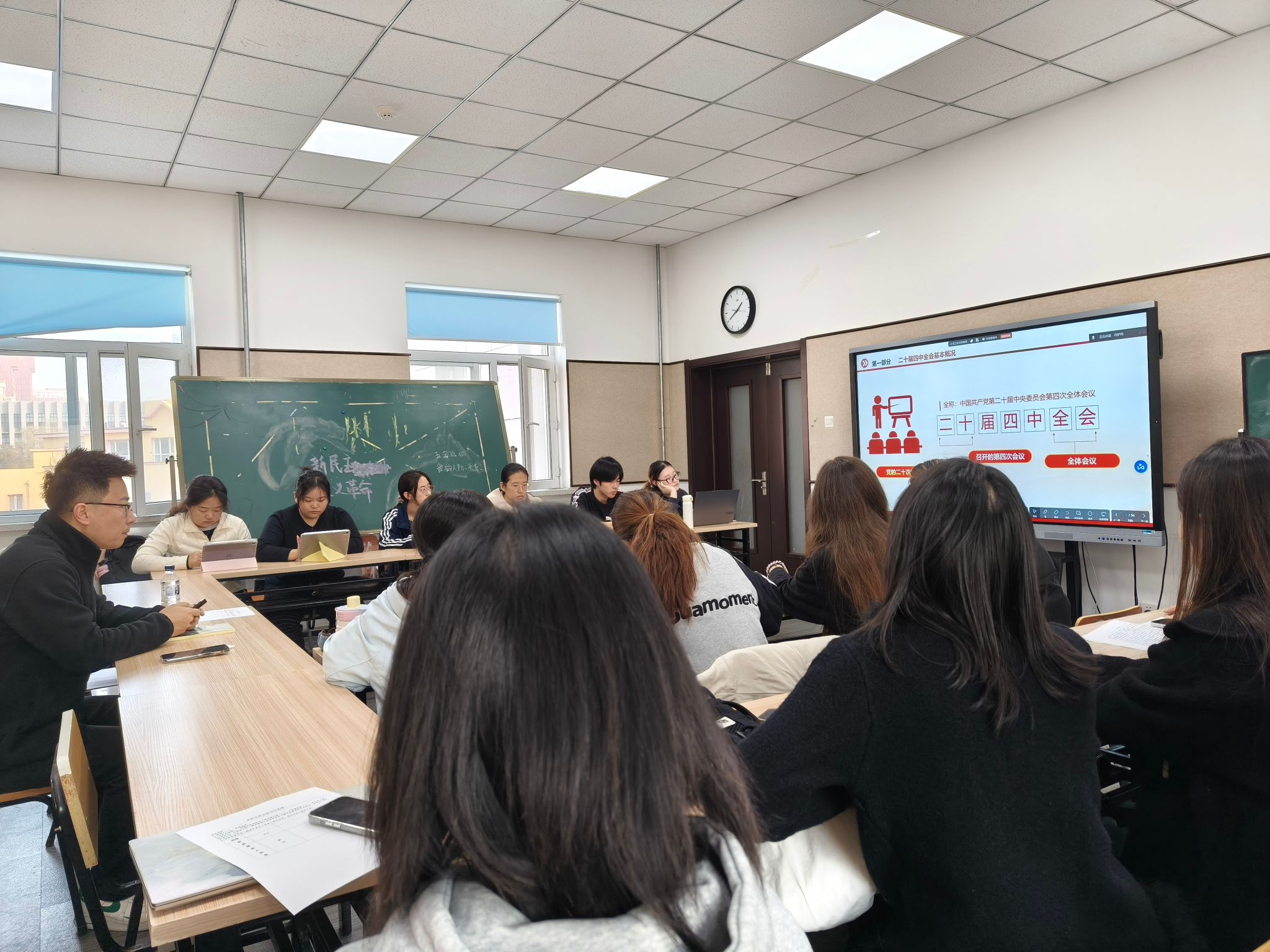 2025年11月4日,心理学院本科生党支部在426会议室召开专题党课,组织全体党员集中学习党的二十届四中全会精神。会议由党支部书记郭帅主持,全体党员同志参会并展开深入学习研讨。