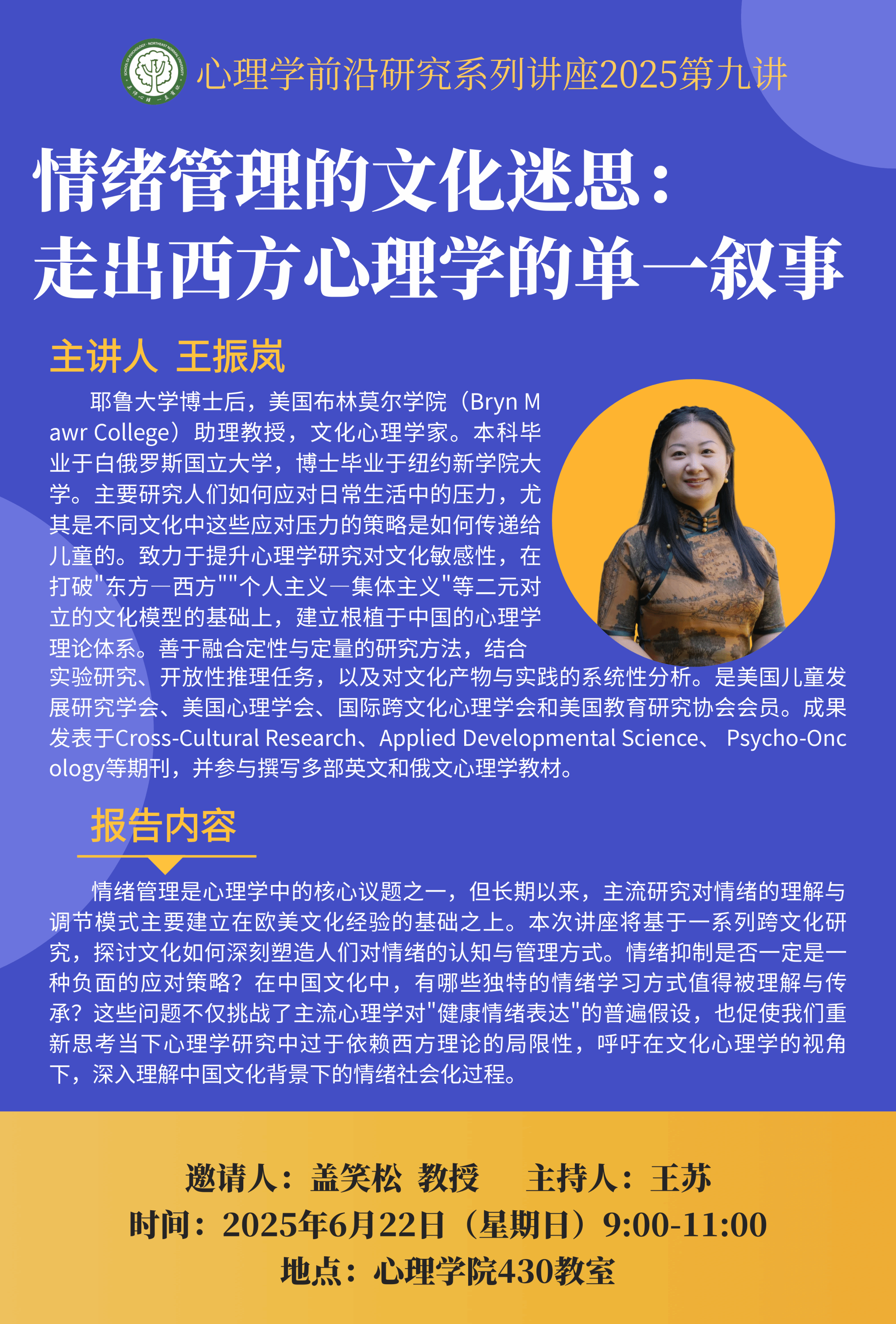 【心理学前沿研究系列讲座】王振岚:情绪管理的文化迷思:走出西方心理学的单一叙事